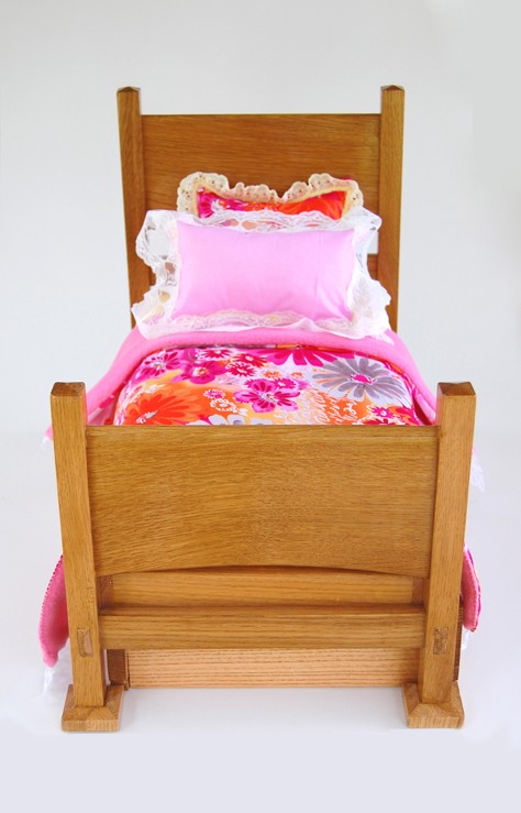This wonderful little trundle bed would be a wonderful gift for that special little girl in your life. Made of all quarter-sawn white oak, with cherry trundle pulls, this bed will last generations.
